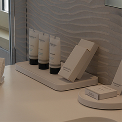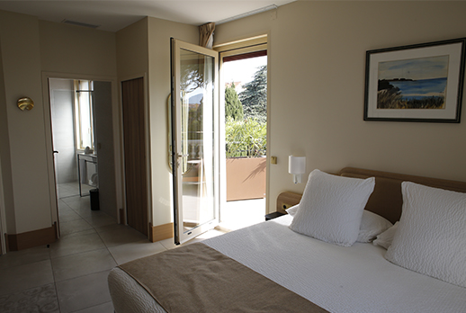 Assurément la terrasse préférée. Situé au dernier étage, lumineuse, Grenat vous invite à jouir de sa terrasse privée de 26m2 dominant l’hôtel et la baie. Une terrasse à vous donner le vertige qui prend le soleil du lever au coucher et vous procure un point de vue remarquable. Un lavabo double vasque, douche a effet de pluie et des toilettes indépendantes complètent le confort.