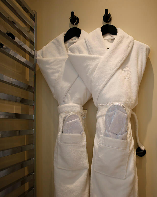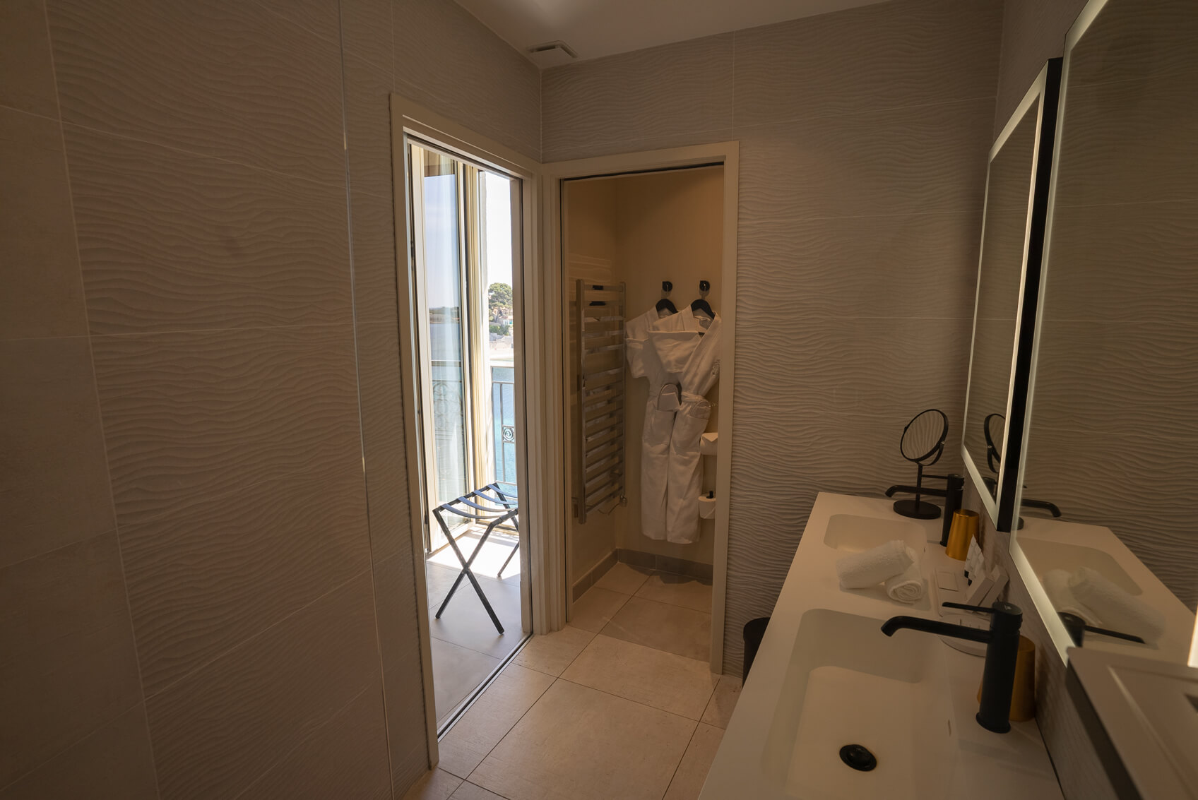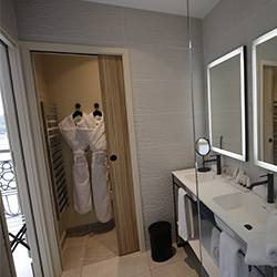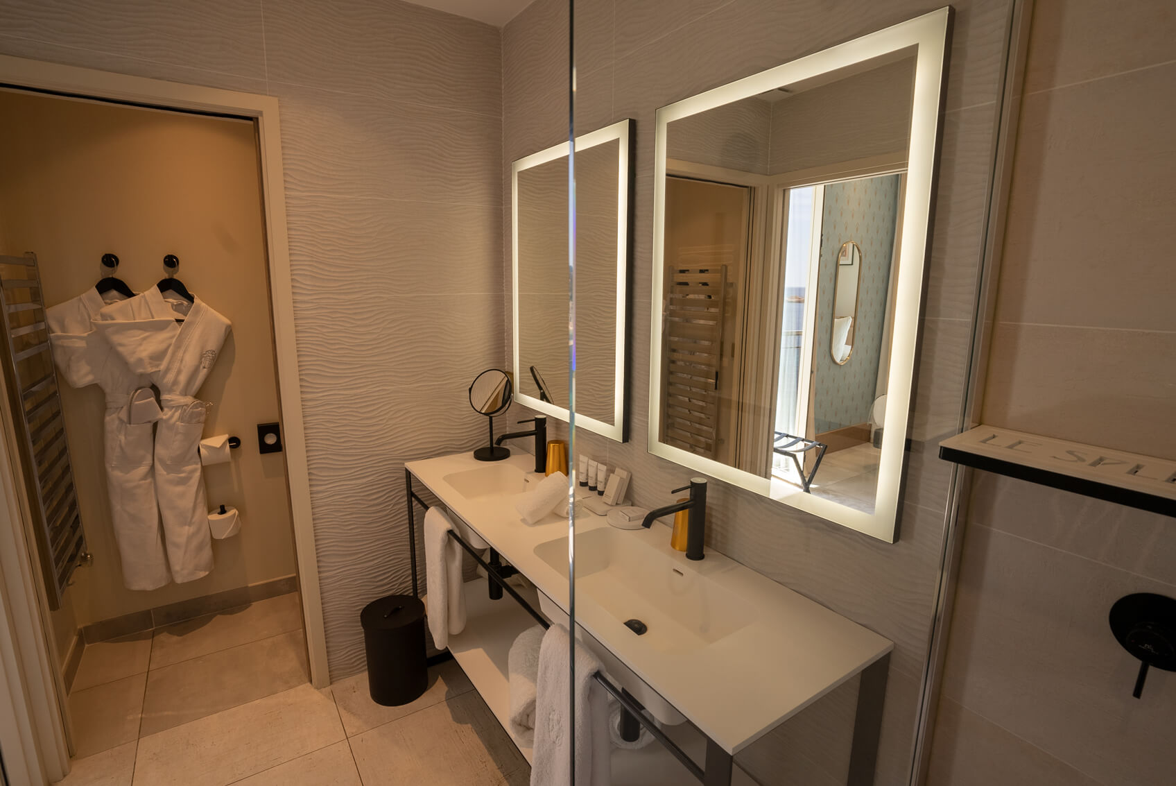 ● Salles de bains avec radiateurs sèche serviettes, sèche-cheveux, séchoir pour maillot de bains, peignoirs, serviettes de toilettes et de bain